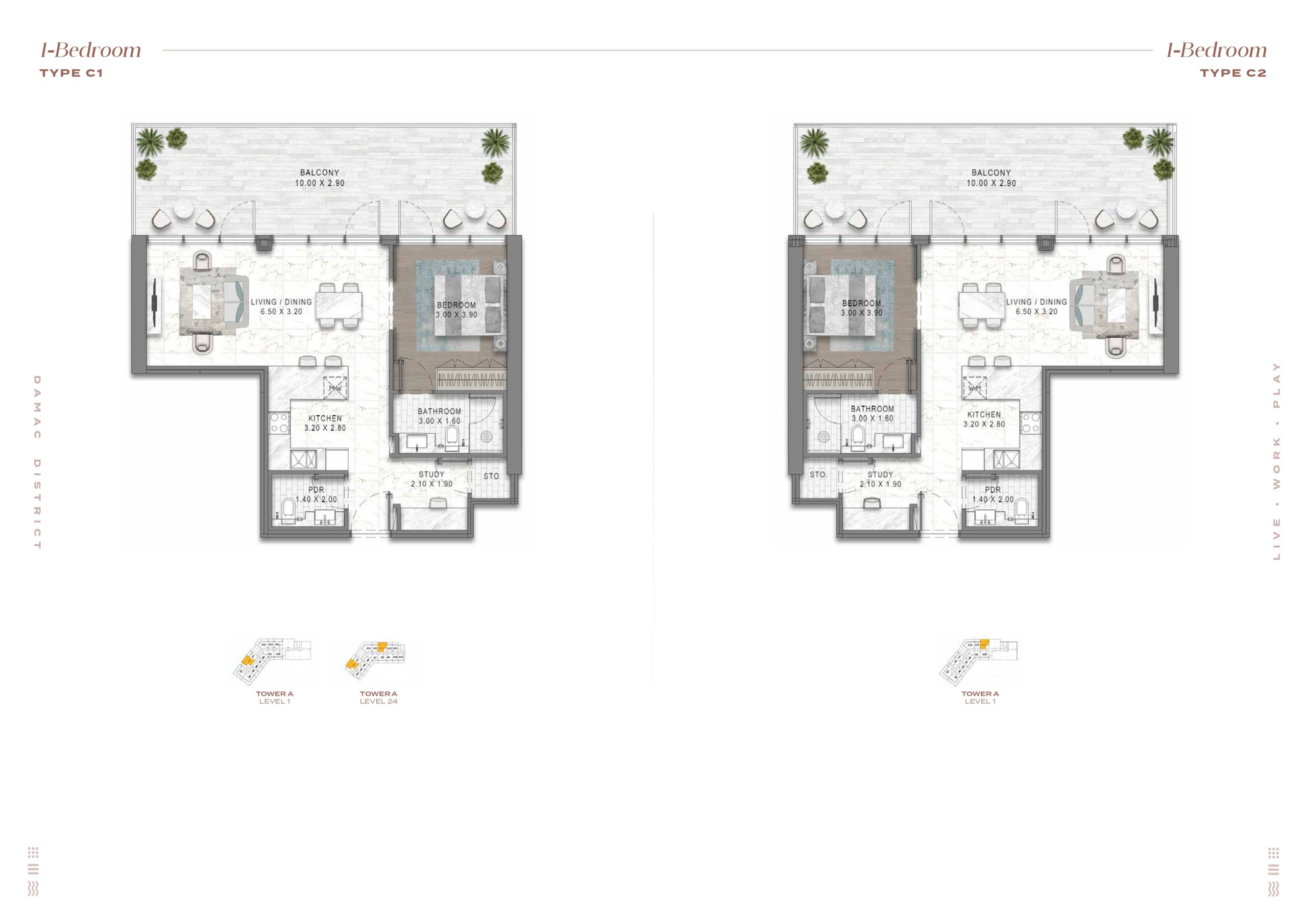 1 Bedroom Type C1 – C2